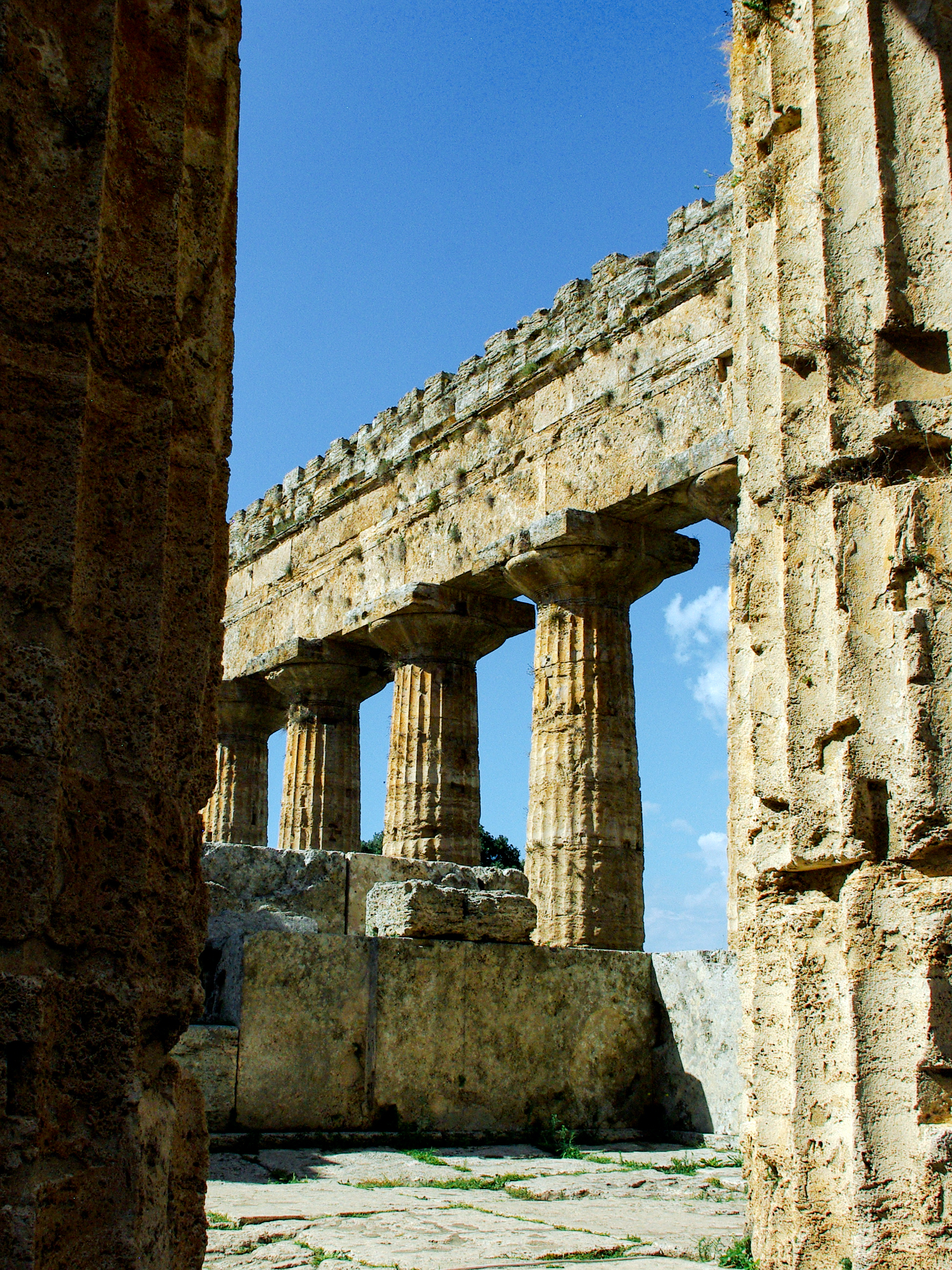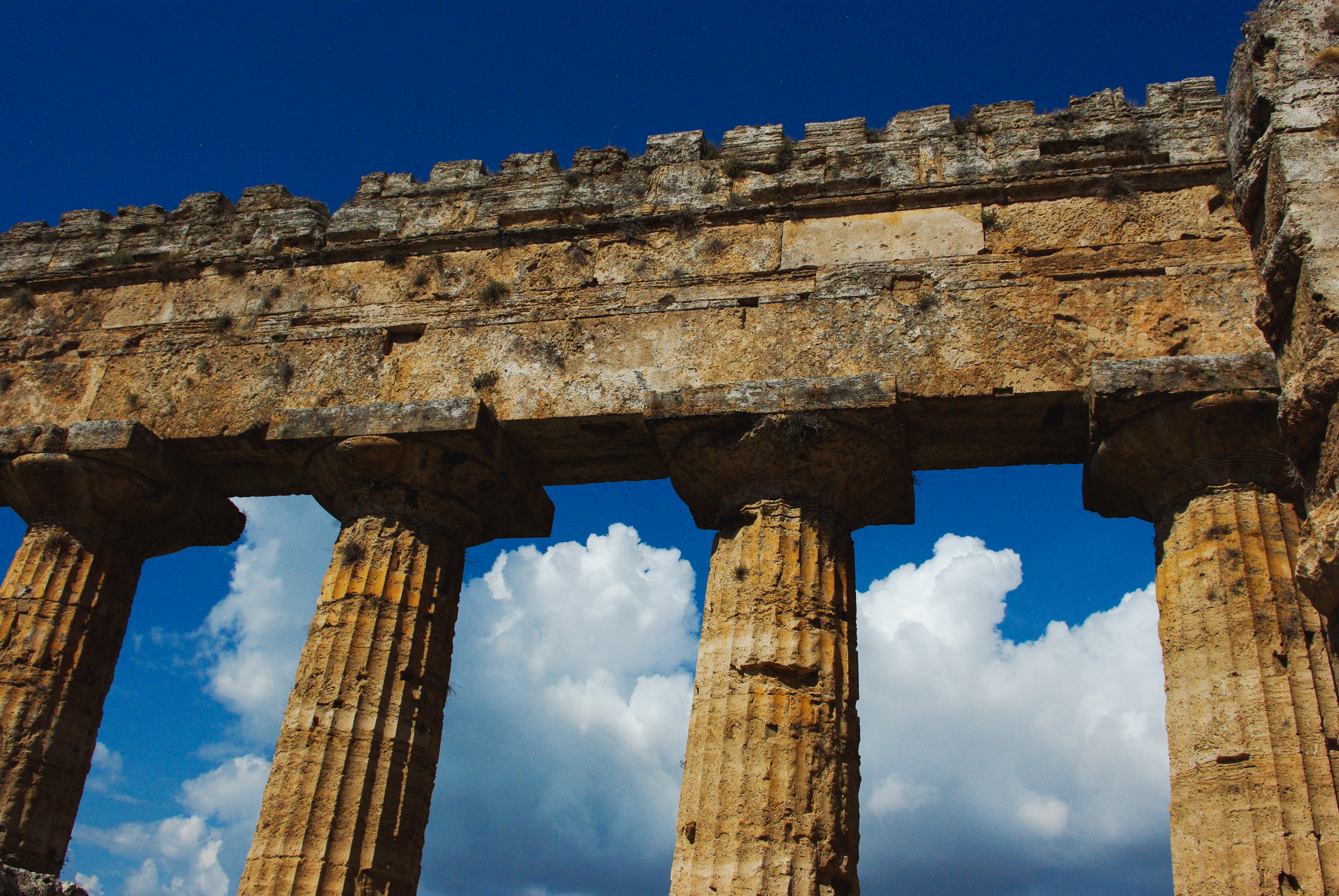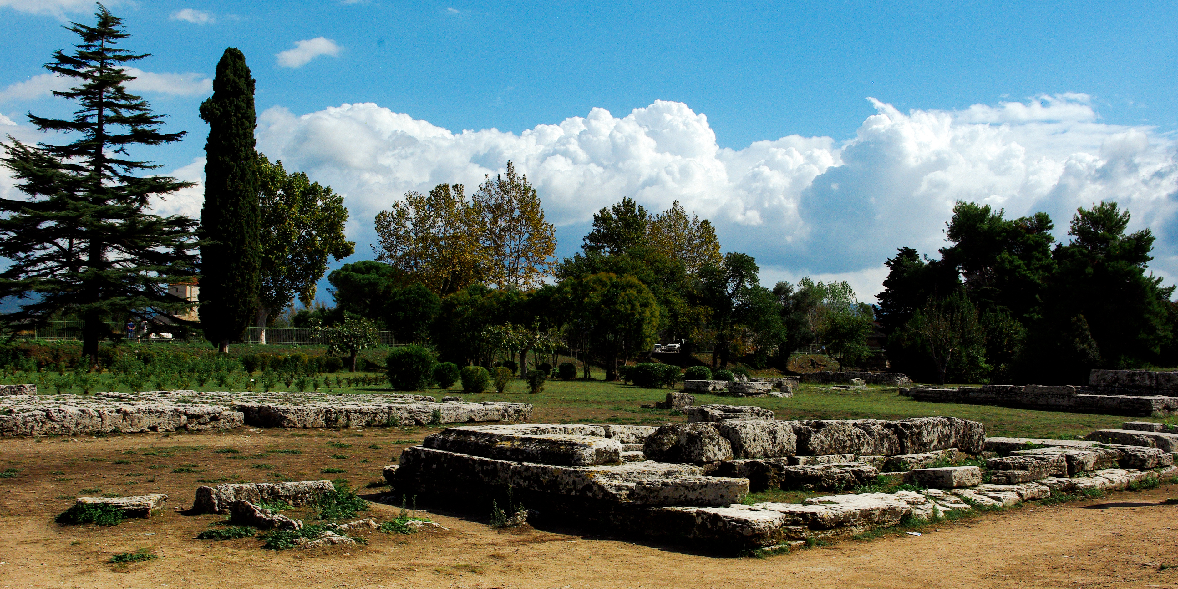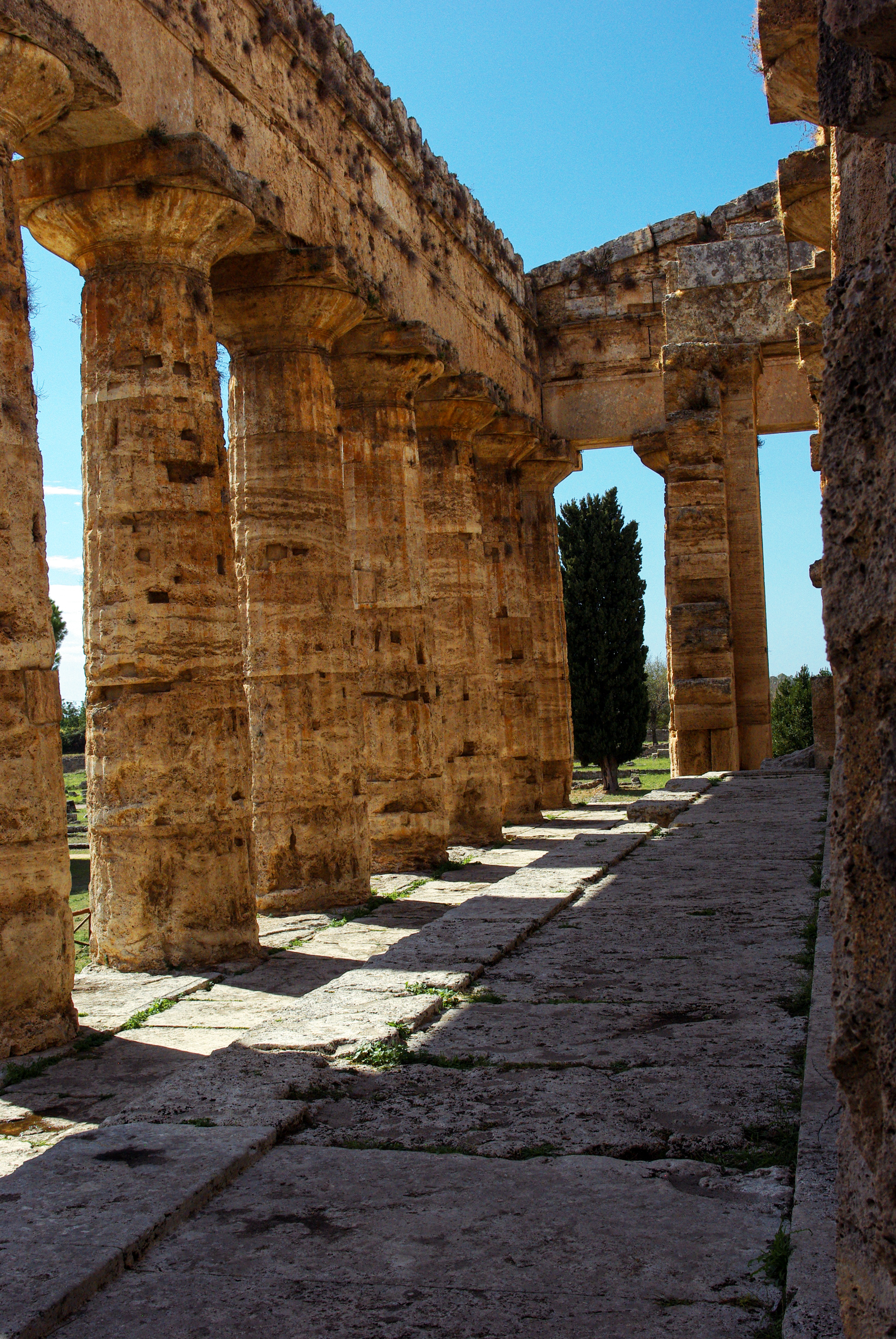 Paestum was an ancient Greek city on the coast of the Tyrrhenian Sea in what is now southern Italy. The area is best known for three Greek temple ruins dating back to 600 BC, as well as well -preserved Roman foundations, streets, and other structures.